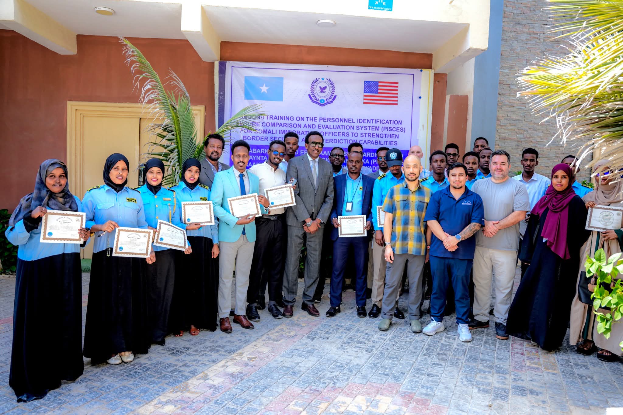 مقديشو- قراءات صومالية- اختتم المدير العام لهيئة الهجرة والجنسية في جمهورية الصومال الفيدراليةالسيد/ مصطفى طحلوو، المرحلة الثانية من برنامج التدريب على نظام PISCES نظام التعرف الآمن على هوية الأفراد،والمقارنة والتقييم، والذي أُقيم في العاصمة مقديشو.