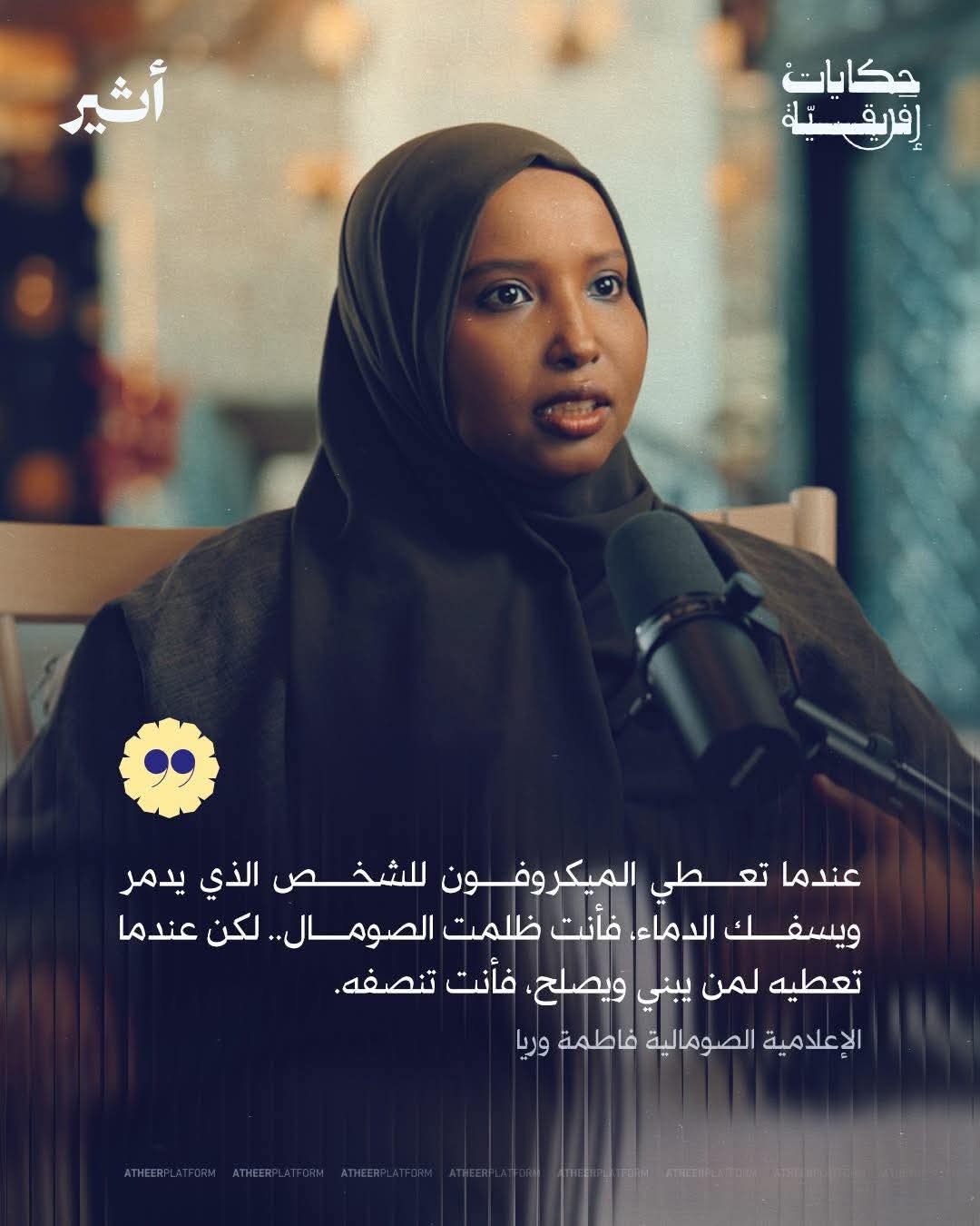 وفي سياق حديثها، انتقدت وريا الطريقة التي تُقدَّم بها صورة الصومال في بعض المنصات الإعلامية، مؤكدة أن “إعطاء المنبر لمن يدمّر ويسفك الدماء يظلم البلاد، بينما تسليط الضوء على من يبني ويُصلح ينصفها”. وتعكس هذه العبارة دعوة واضحة لإعادة صياغة السردية الإعلامية حول الصومال، والتركيز على النماذج الإيجابية القادرة على إلهام التغيير.