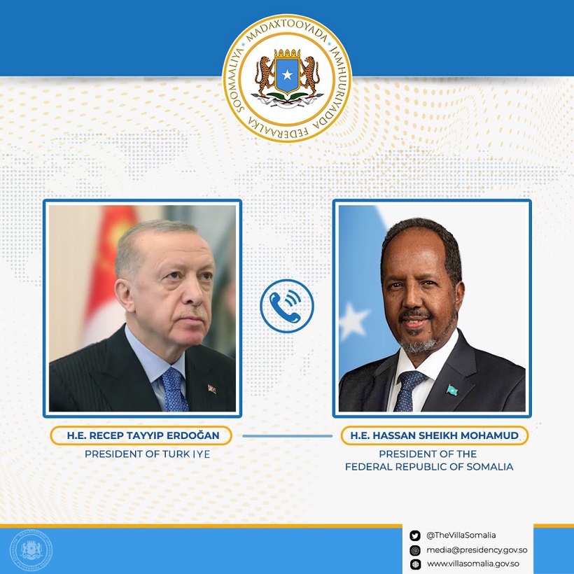 مقديشو (قراءات صومالية)- صرحت وكالة الأنباء الصومالية أن الرئيس الصومالي حسن شيخ محمود، هاتف الرئيس رجب طيب أردوغان، مهنئا بفوزه في انتخابات الرئاسة التركية.