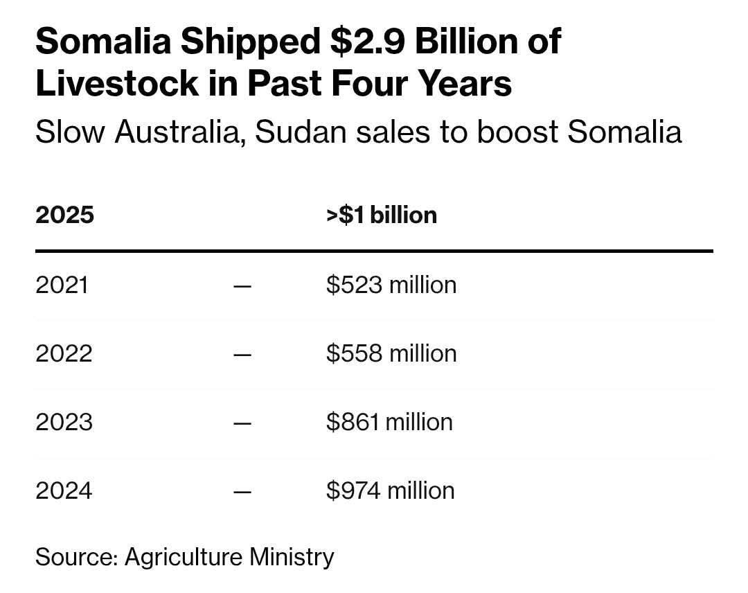 ويأتي هذا النمو اللافت في ظل تراجع صادرات السودان وأستراليا نتيجة النزاعات الداخلية والظروف المناخية، الأمر الذي أتاح للصومال فرصةً لتوسيع حصتها في الأسواق الخليجية، وعلى رأسها المملكة العربية السعودية والإمارات وسلطنة عُمان.