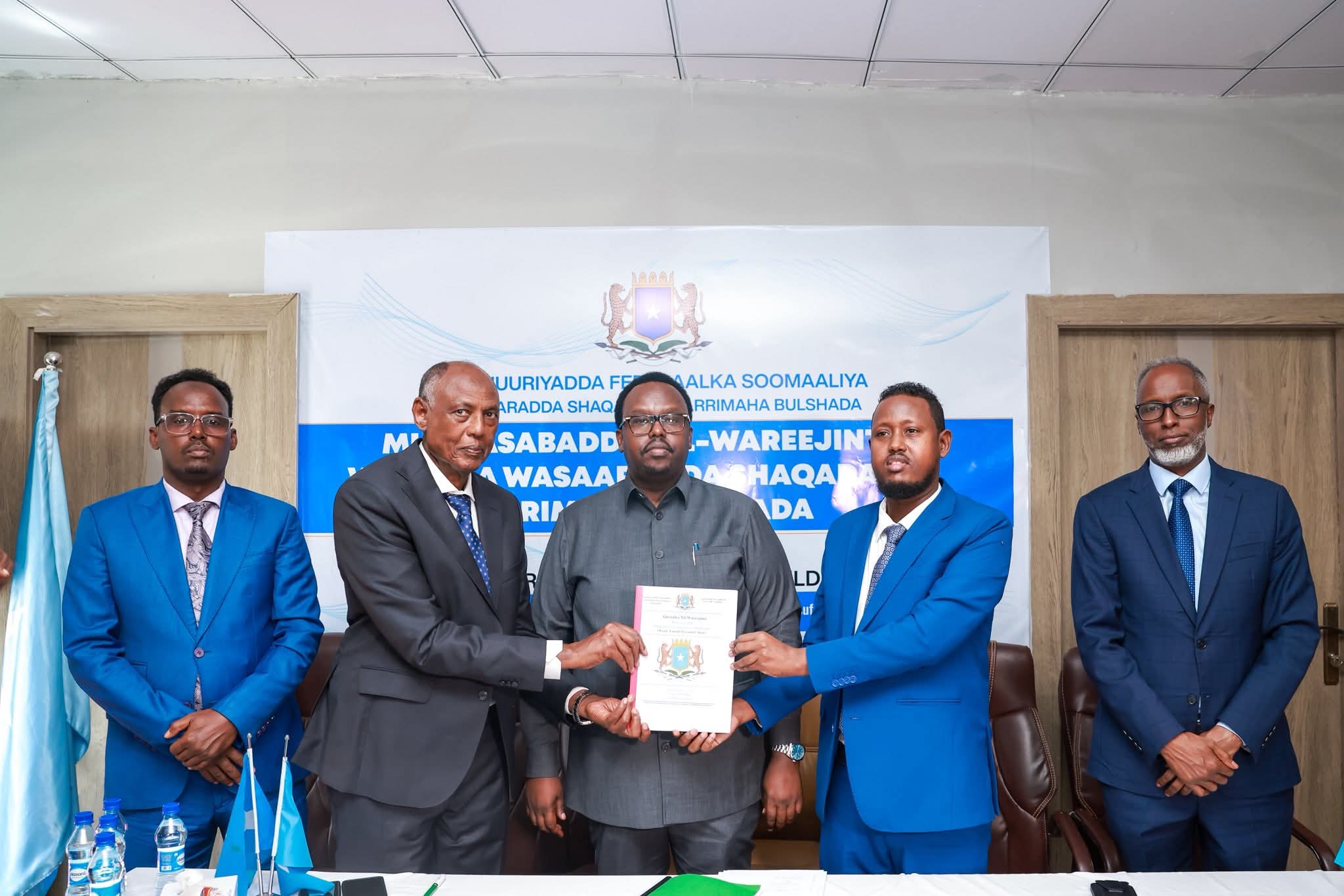 مقديشو- قراءات صومالية- أشرف نائب رئيس الوزراء في حكومة جمهورية الصومال الفيدرالية، السيد صلاح أحمد جامع، على مراسم تسليم وتسلم وزارة العمل والشؤون الاجتماعية بين الوزير الجديد السيد سالم عليو إبرو، والوزير السابق السيد يوسف محمد آدم.