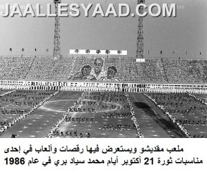 واحتفالات لعيد ثورة 21 من أكتوبر في الثمانينات، وفي يوليو 1990 شهد الملعب حدثا مأساويا، حيث أراد الرئيس سياد بري أن يخطب للجماهير في أواخر حكمه، فثار بعض الحاضرين وأحدثوا صخبا وفوضى، مما أدى إلى ردّ قوات الحرس بإطلاق نار عشوائي تجاه الحشود، وسقط قتلى وجرحى كثيرون…اذكر أن أحد الحاضرين جاءإلى منزلنا ويبدو من قميصه آثر الدم حيث سقط عليه شخص مصاب.