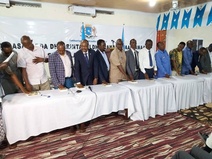 مقديشو (قراءات صومالية)- أدى أعضاء نواب برلمان ولاية غلمدغ الجدد اليمين الدستوري في مدينة طوسمريب بعد إعلان اللجنة الفنية لتشكيل إدارة ولاية غلمدغ يوم أمس الجمعة عن قائمة تضم 83 نائبا.